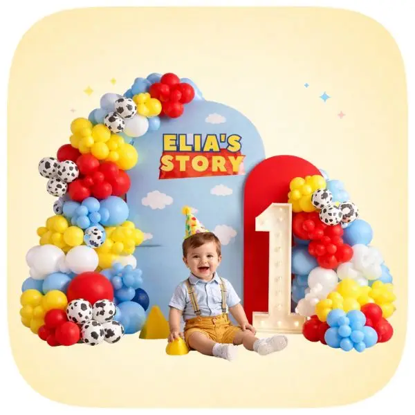 Theme Balloon Decoration | ₹2,499 – ₹3,999 | Balloon arch, kids or colour theme, backdrop |