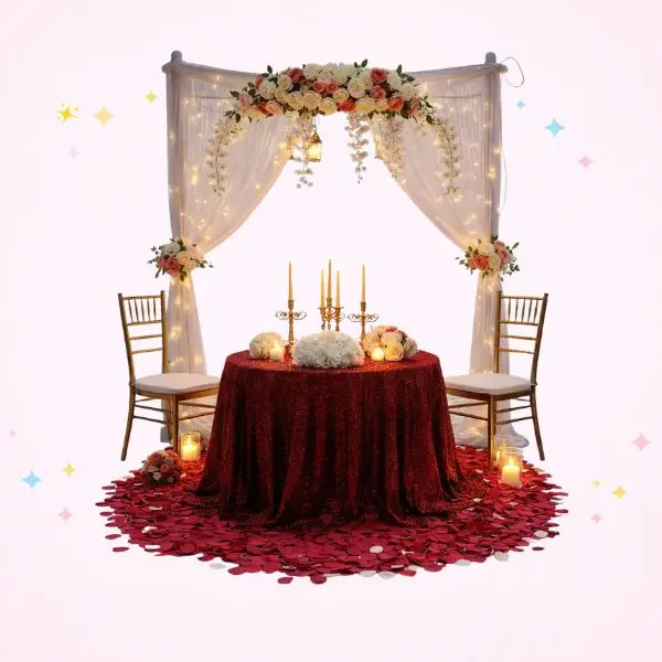 An anniversary is a different kind of occasion from a birthday. The decoration should feel romantic and personal rather than festive and loud. Soft tones, fairy lights, rose petals, a well-chosen balloon arrangement, and a stage or backdrop that puts the couple at the centre of the space.