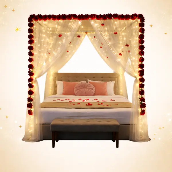 Canopy / Cabana Decoration | ₹4,499 – ₹10,999 | Romantic setup with lights, draping, balloons |